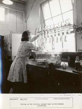 "Setting up the volatile solvent test in the Control Laboratory." Photo caption